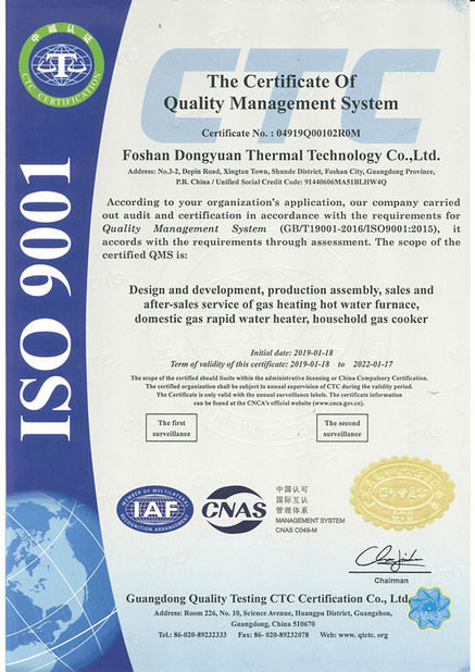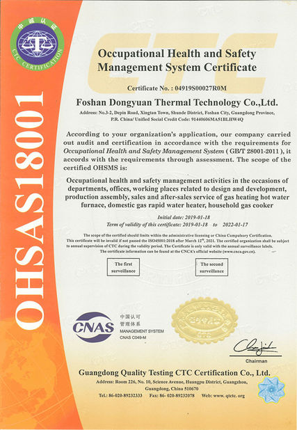 نجاح DONGYUAN في الحصول على شهادات ISO9001 و ISO14001 و OHSAS18001 ، والغلايات وسخانات المياه لدينا تتوافق مع طلبات شهادة CU-TR والمعايير الأوروبية ، وجعلها بيع حار في جميع أنحاء العالم ، وخاصة في روسيا وإيران وأذربيجان وأوزبكستان ، إسرائيل وغيرها من الأسواق الأوروبية وجنوب سوق آسيا.